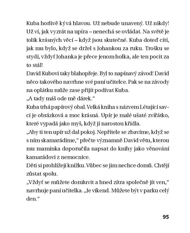 V první třídě Kuba nechtěl číst, psát ani počítat, ale díky skvělému nápadu paní učitelky ho škola začala bavit. Co se to však s Kubou děje teď? Kuba by ve dne jen spal a spal, jako by z něj každou noc kdosi vysál veškerou energii. A taky že ano! Jenže tenhle upír má naprosto nečekanou...