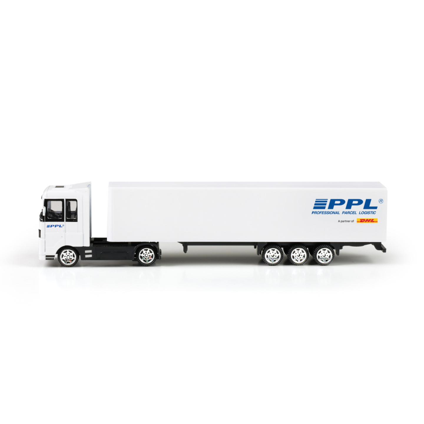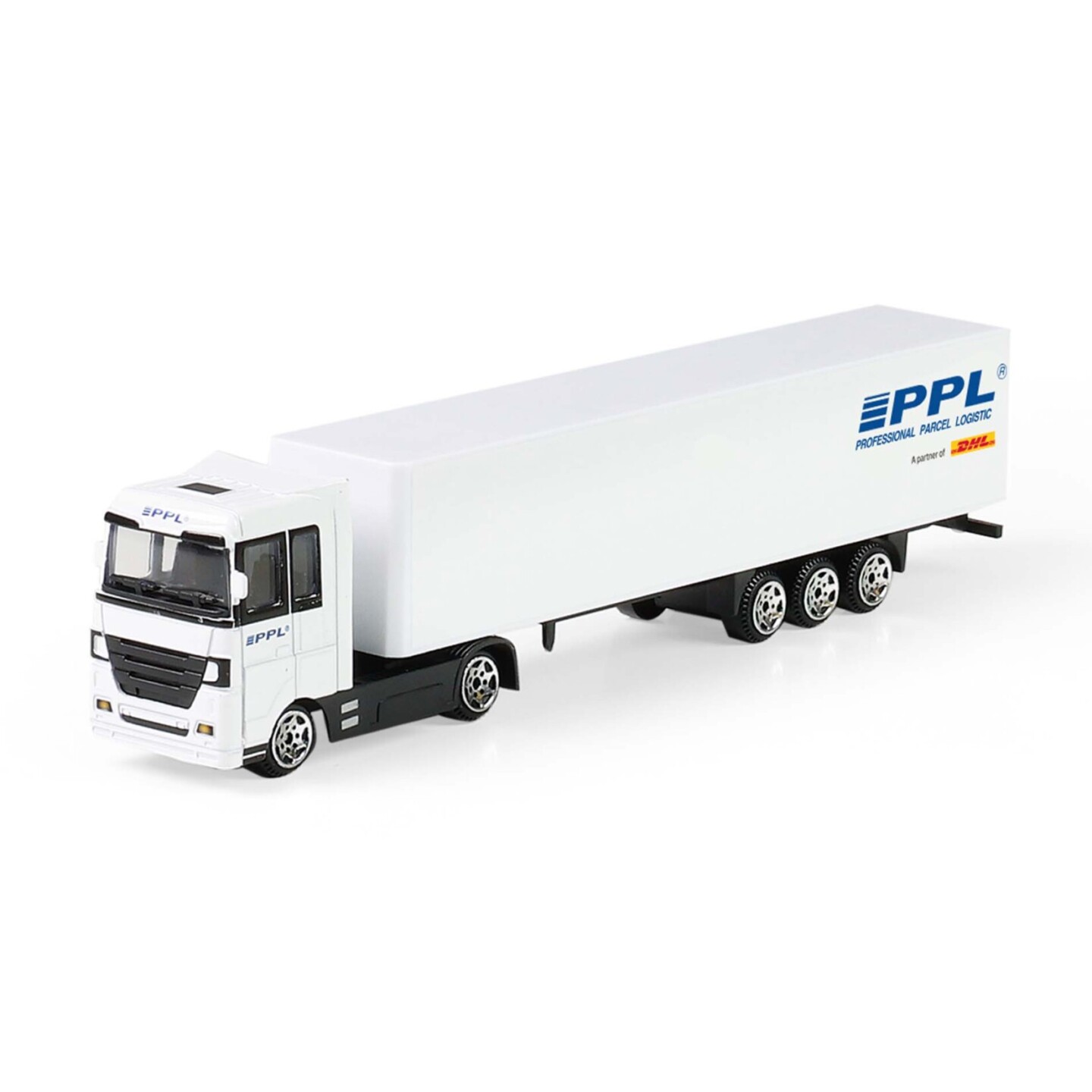 Pořiď si tento originální kamion s logem přepravní společnosti PPL a rozšiř si tímto svůj vozový park! Model kamionu 1:87 je vyroben z kovu, přívěs je vyroben z PVC. Model je dlouhý cca 20 cm a jezdí na volný chod. Tahle unikátní hračka nadchne všechny kluky, tak obohať svou sbírku o tento...