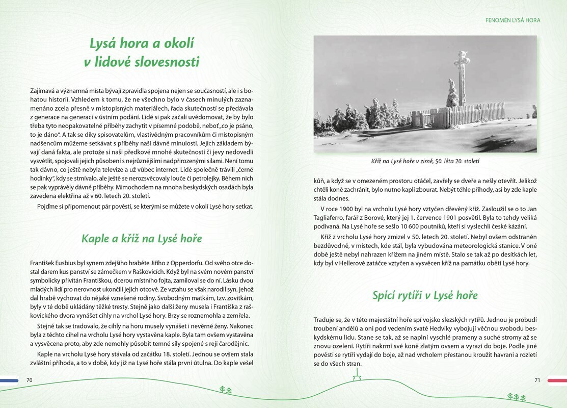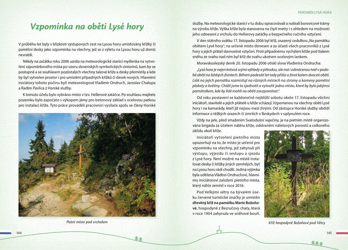 Kniha pro milovníky Lysé hory, ale i pro ty, kdo ji ještě neznají. Dozvíte se řadu informací o historii a současnosti chat, o turistických trasách (doplněných mapami), o místní fauně i flóře, osobnostech současných i z dob minulých, závodech zde pořádaných, o místním dění, obcích a zajímavých...