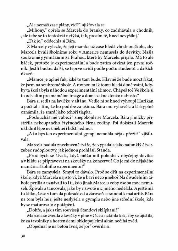 Báře je čtrnáct a to jí stačí. Další problémy nepotřebuje. Ani s novým přítelem Martinem po boku nemá klid. Sestřenice Marcela se pořád hádá se svojí mamkou. Bráška bez přestání nosí domů podivná zvířata. A taťka se neustále škorpí s babičkou. Zlepší se všechno, zatímco se vydá na okružní plavbu...