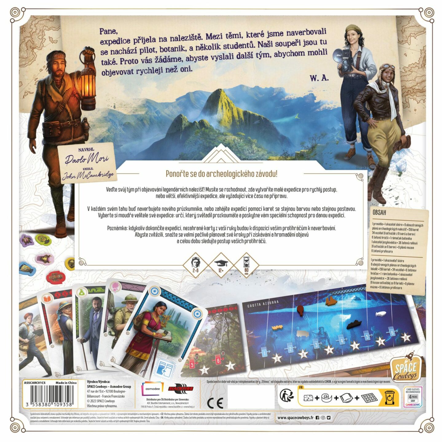 pečlivě plánovat své kroky při získávání a hromadění objevů a celou dobu sledujte postup vašich protihráčů. 1 pravidla 1 ukazatel skóre 6 oboustranných plánů archeologických nalezišť 159 karet 54 vozidel 6 žetonů hráčů 1 rámeček botanika 1 ukazatel jazykovědce 36