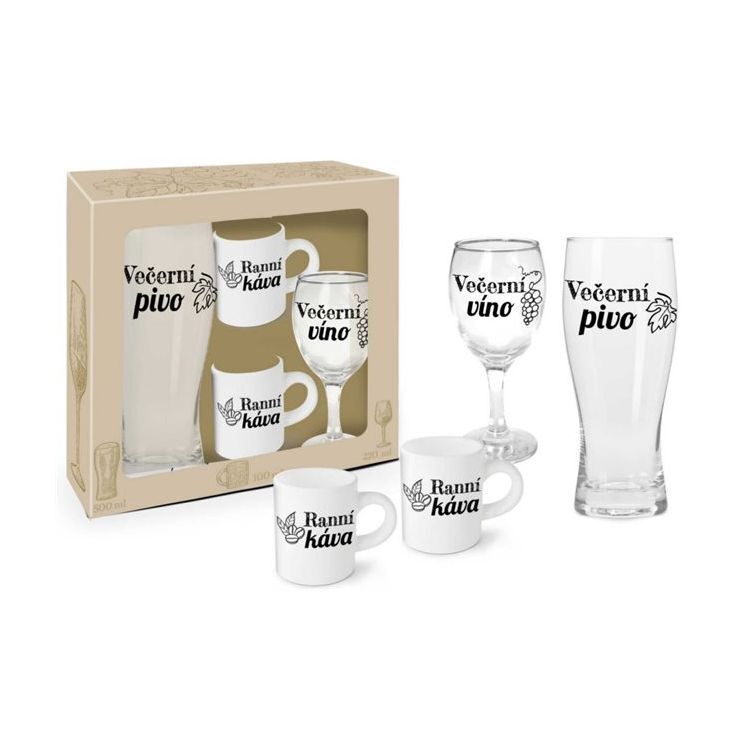 V Rodinné sadě z kolekce Můj bar si každý najde to své. Objem hrnků: 100 ml Objem vinné sklenice: 220 ml Objem půllitru: 500 ml
