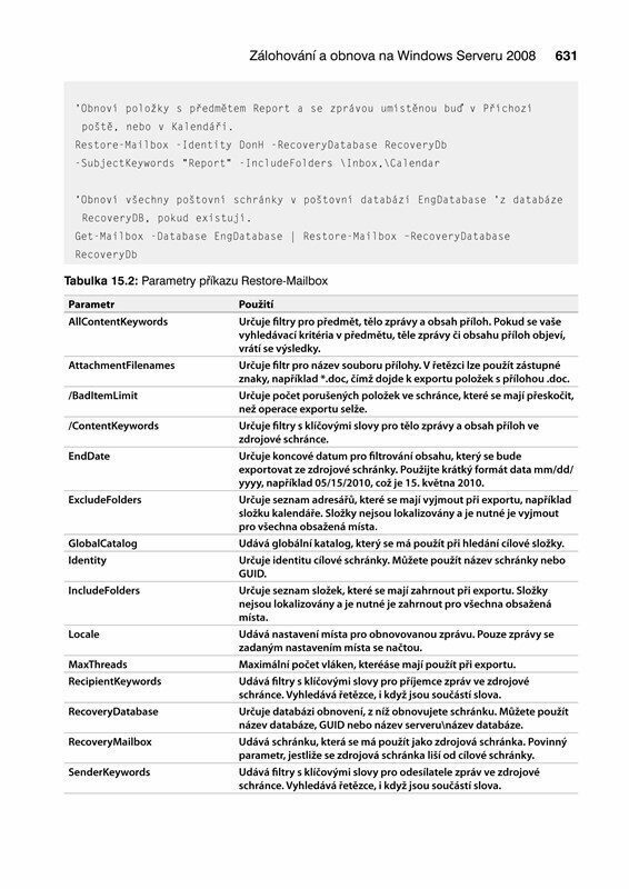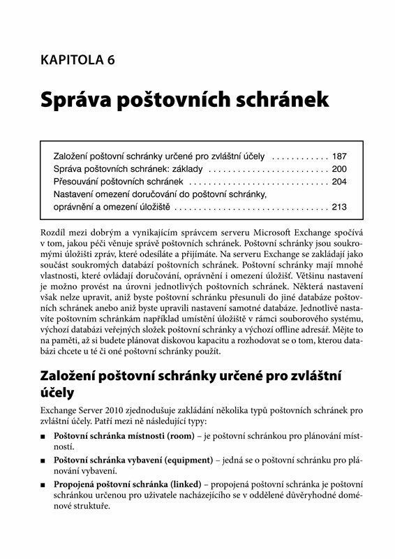 Tato stručná a v praxi dobře použitelná pomůcka pro správce Exchange Serveru 2010 se vám stane zdrojem odpovědí na otázky každodenní administrace poštovního serveru. Kromě běžných úkonů se kniha také věnuje pokročilejším technologiím, například EdgeSync, Database, Availability Group, Outlook...