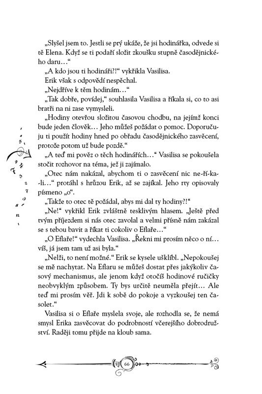 Vasilisa neměla až donedávna ponětí o tom, že její otec je mocný mág země Eflary. Místa, kde žijí čarodějové, kteří ovládají silnou magii, díky níž mohou ovlivňovat čas. Když se pak sama v této zemi ocitne, netuší, jaké nebezpečí tam na ni čeká. Nikdo neví, proč se tam najednou objevila, ani kým...