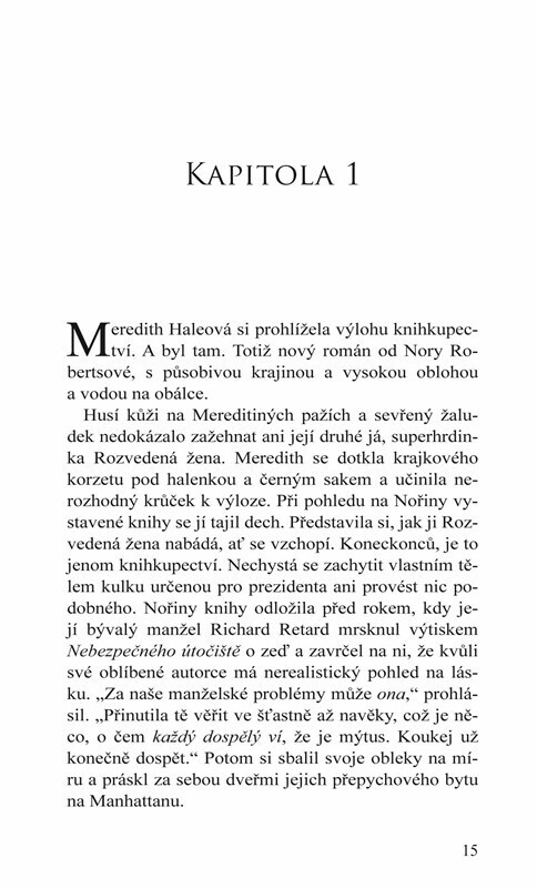 Bývalý manžel novinářky Meredith Haleové, Richard Sommerville, tvrdí, že jeho žena má díky románům Nory Robertsové nereálné představy o manželství, a Meredith tomu uvěří. Sny o štěstí až navěky – čili o Zemi Nory Robertsové, jak to nazývá její matka – se jí rozplynou. Když ji však rodina požádá,...