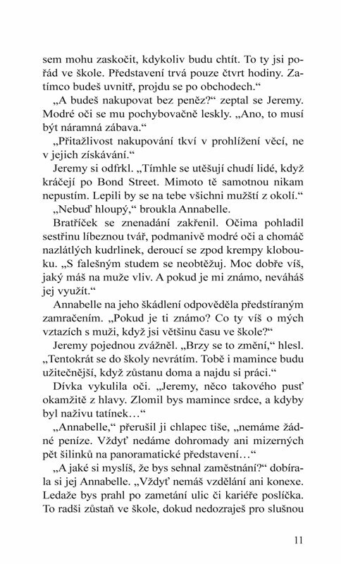 Londýn 1843 Společenská sezona se chýlí ke konci a čtyři mladé dámy, které se vydaly do Londýna, aby zde nalezly manžela, zatím marně čekají na někoho, kdo by jejich přání splnil. Jedna z nich, Annabelle Peytonová ví, že je to její poslední příležitost, kdy by mohla poznat a okouzlit bohatého...