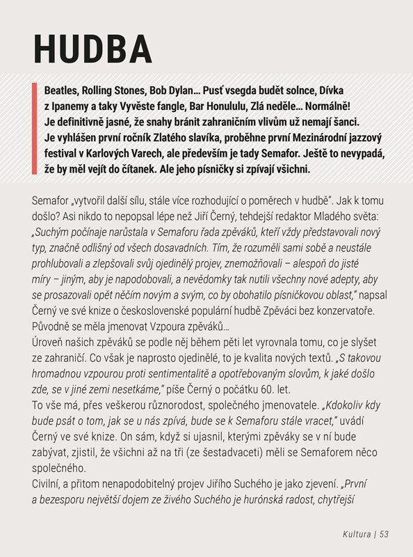 Rok 1962 už nikoho nenechává na pochybách, že kolo dějin se otáčí. Destalinizace jede na plné obrátky – z Letné mizí generalissimův pomník a Stalinova třída se stává Vinohradskou ulicí. Jako houby po dešti se po celé zemi objevují divadla malých forem a týdeník Mladý svět vypisuje první ročník...