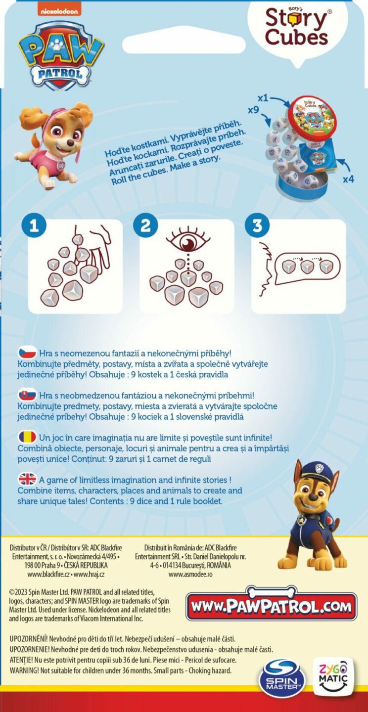 Hra s neomezenou fantazií a nekonečnými příběhy! Kombinujte předměty, postavy, místa a zvířata z Paw Patrol (Tlapkové patroly) a společně vytvářejte jedinečné příběhy! Jak na hru? První hráč hodí všemi devíti kostkami, jednu si vybere a začne vyprávět příběh. Každý následující hráč postupně...