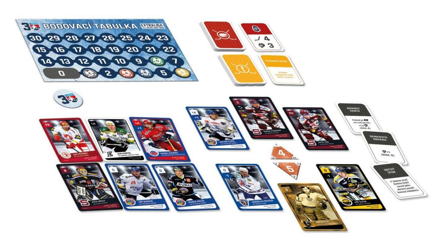 karet legend bez klubové příslušnosti. Je jen na vás, jak bude vypadat váš tým a jestli ho dokážete dovést až k titulu. Hra je určena pro 2-5 hráčů od 8 let a zabere vám zhruba 30 minut. Je rozdělena do dvou hlavních fází. 1. DRAFT Napadá vás lepší herní mechanika pro