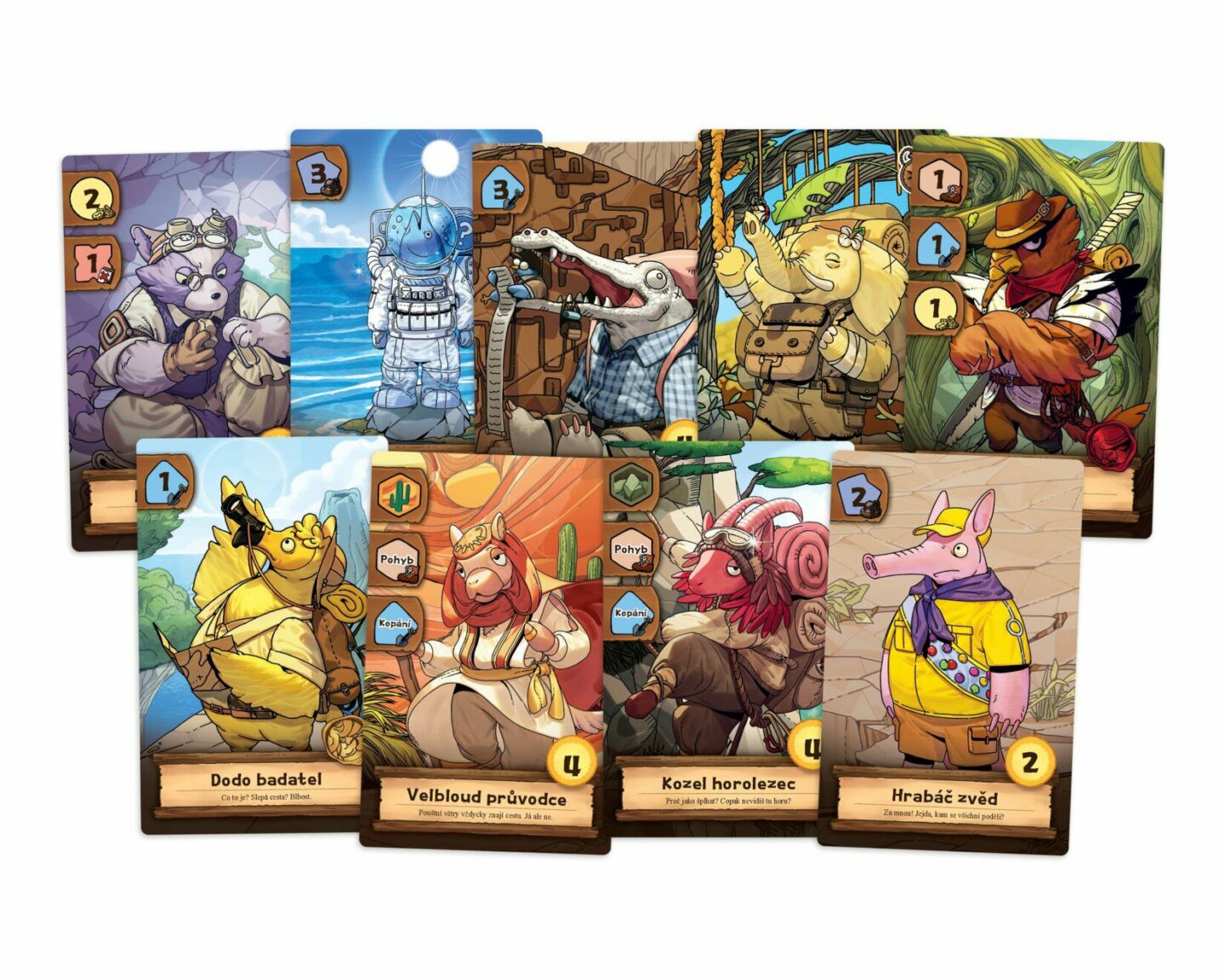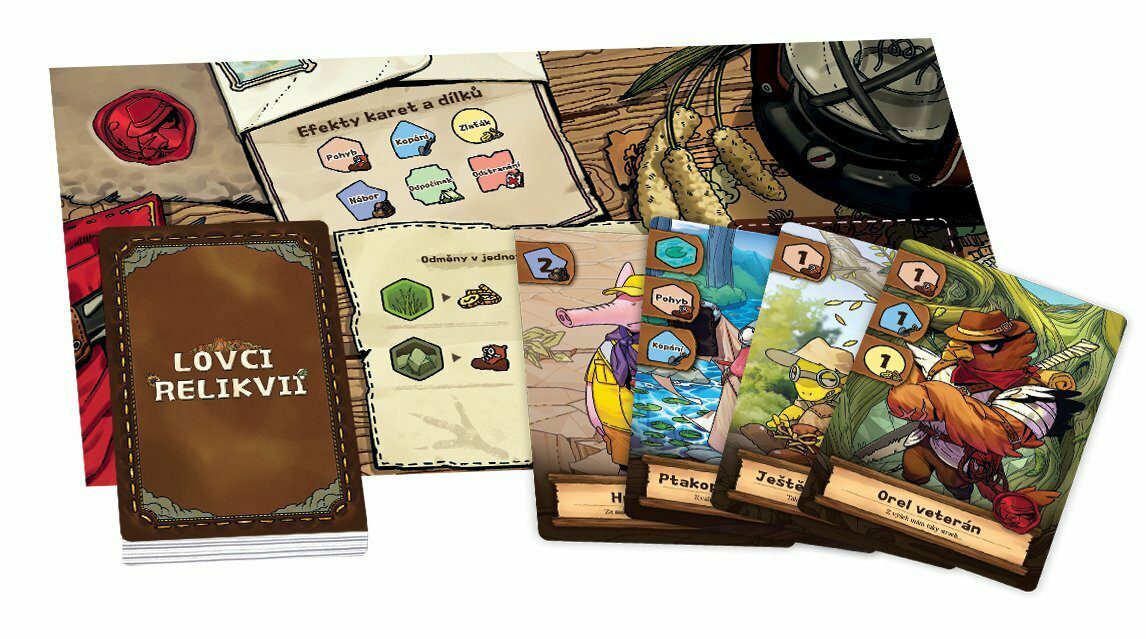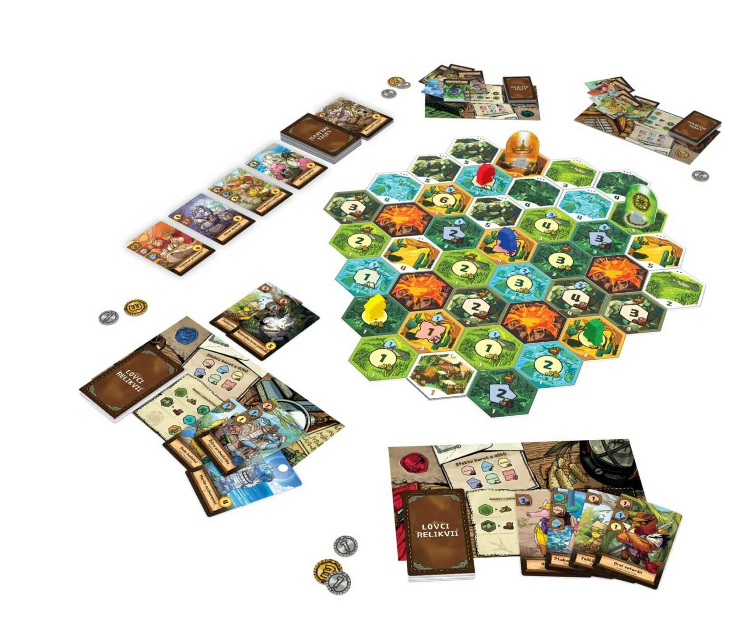 Existují 3 úrovně terénu, přičemž vyšší úroveň znamená obtížnější terén a zároveň větší odměnu. Třetí úroveň terénu ostrova ukrývá 5 zakopaných relikvií. Kdo vykope 2 relikvie, zvítězí. Obsah balení 4 hráčské desky 46 karet průzkumníků 4 figurky 8 karet