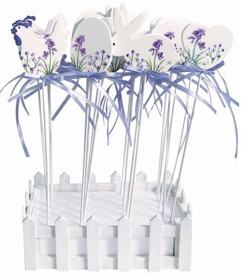 Dřevěná dekorace s levandulovým motivem k ozdobení květináče. Mix motivů - není možnost výběru....
