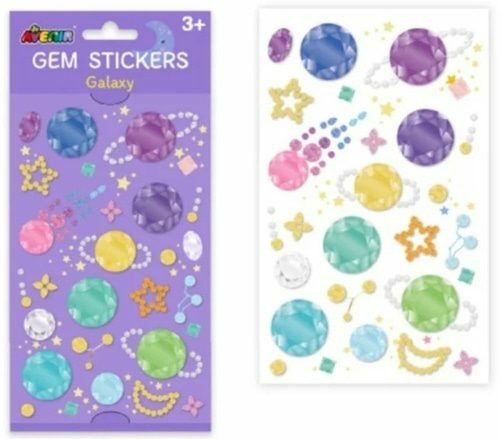 Nálepky drahokamů s motivy z vesmíru. Nanášejte na jakýkoliv hladký povrch. Hračka obsahuje malé části. Věk: 3+