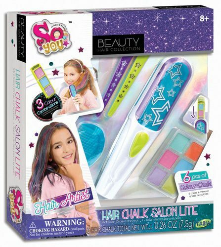 Oživ svůj běžný účes veselou barvou. Obsah: držáček pro barvení vlasů,křídy - 6ks,spony do vlasů - 2ks a hřeben Věk 8+