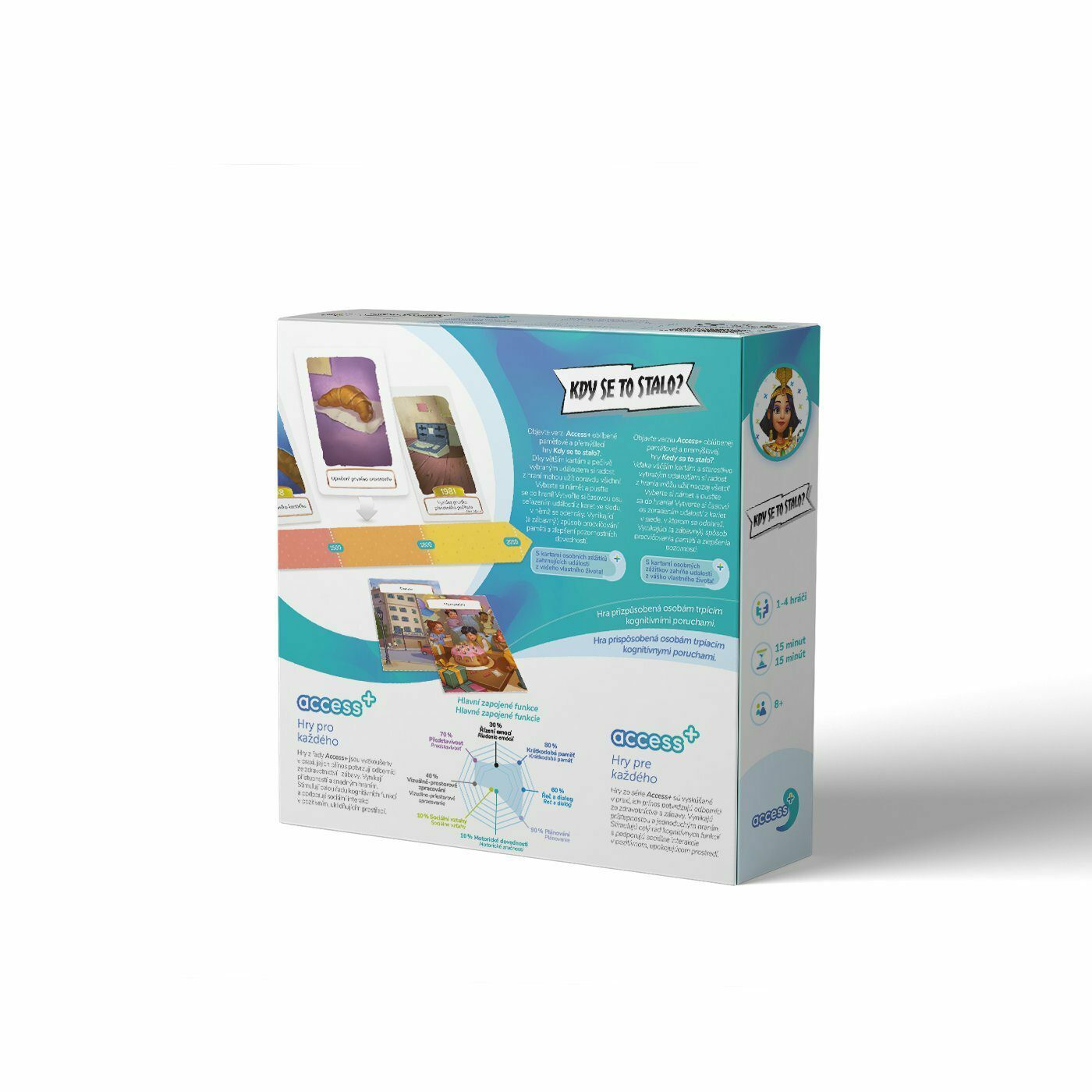 všichni! Vyberte si námět a pusťte se do hraní! Vytvořte si časovou osu seřazením událostí z karet ve sledu, v němž se odehrály. Vynikající (a zábavný!) způsob procvičování paměti a zlepšení pozornostních dovedností. Kognitivní funkce využívané ve hře Kdy se to stalo?