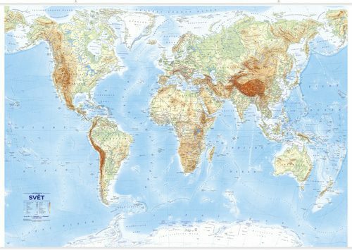 Nové přepracované vydání původní obecně zeměpisné mapy. Nyní ještě přehlednější a čitelnější. Ideální spojení politické a fyzické mapy. Kombinuje to nejdůležitější z obou populárních map: hranice a názvy států, všechna hlavní a další významná města, stínovaný reliéf, horopis a vodopis, ostrovy a...