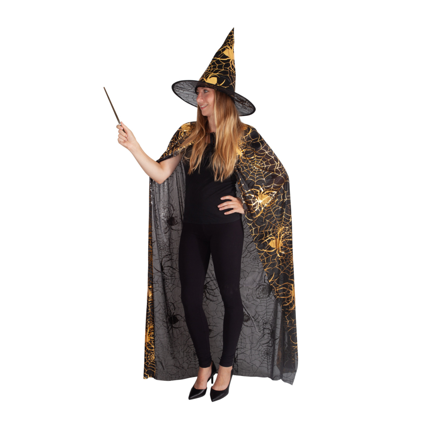 Čarodějnický plášť s kloboukem a pavučinou pro dospělé