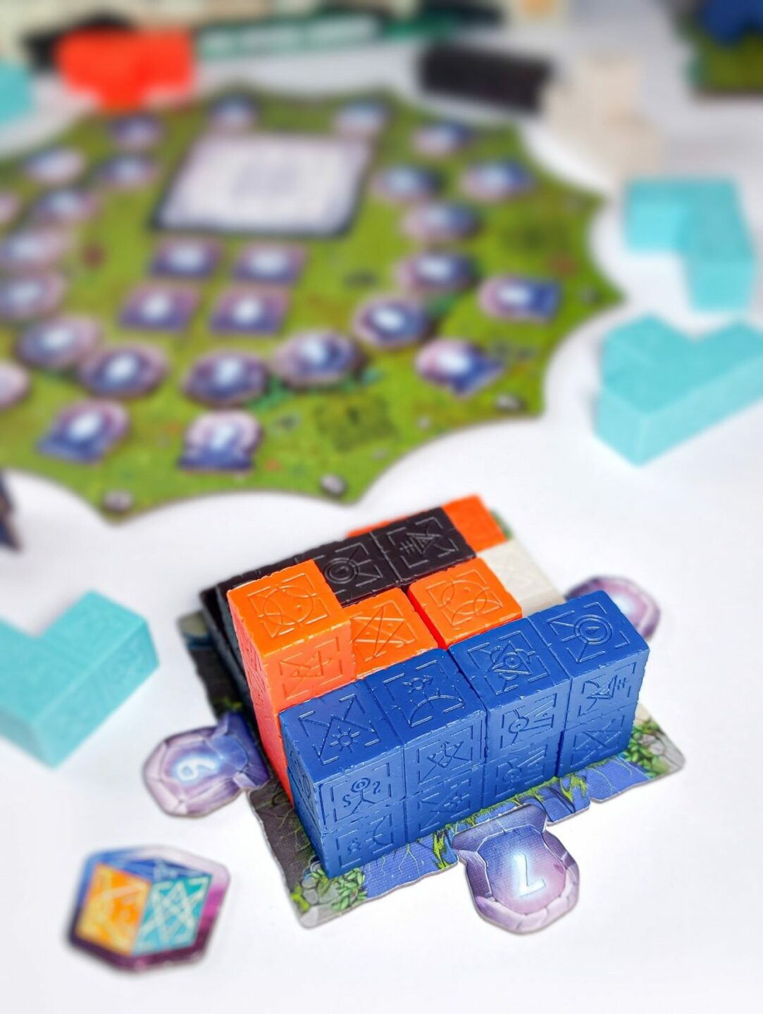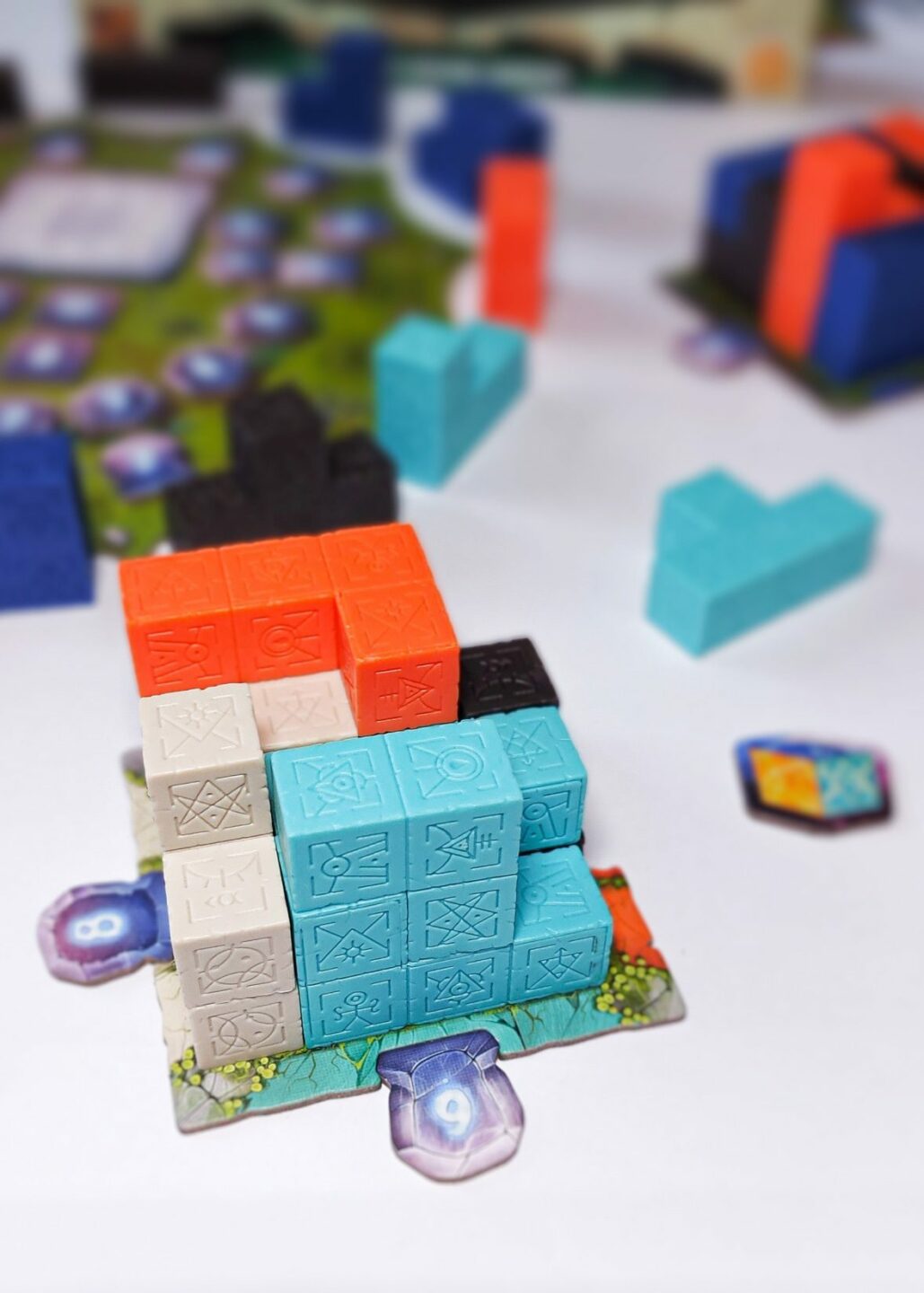 kruhové nabídky stavební kameny monolitů v různých barvách. Ty se snaží umisťovat na svou stavební desku, a přitom dodržovat přidělené barevné schéma, které jim pomůže získat vítězné body, plnit společný úkol, případně jen co nejrychleji postavit jednotlivá patra