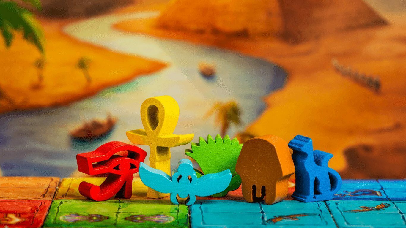 slávou. Pomocí dominových dílků postavíte svou vlastní pyramidu. Přikládejte k sobě dílky se stejným typem drahokamů, abyste potěšili faraona a abyste během stavby 4 stupňů pyramidy dosáhli nejvyššího počtu bodů prestiže. Obsah balení: 90 dílků domina 12 překrývacích