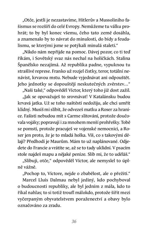 Koncem třicátých let 20. století se Španělsko propadá do chaosu občanské války. Na útěku před stoupenci generála Franka se ocitne i mladá těhotná vdova Roser a Víctor Dalmau, armádní lékař a bratr jejího zesnulého manžela. Aby přežili, musí udělat něco, po čem ani jeden netouží – uzavřít sňatek....