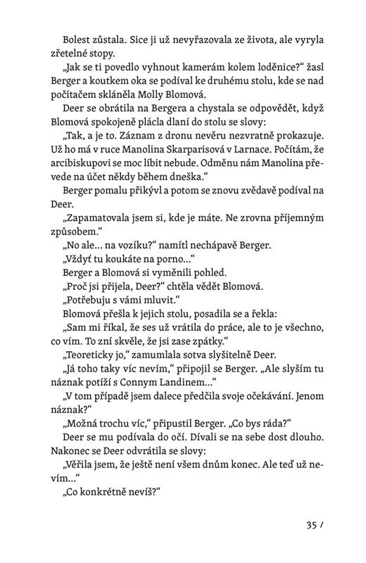 Končí jaro a ledy pukají. Deer, kamarádka i policejní kontakt Sama Bergera a Molly Blomové, se zotavuje po brutálním útoku ruského mafiánského bosse. Protože je upoutaná na invalidní vozík, nedostane se k ničemu jinému než ke kancelářské práci. Během papírování však objeví nečekané spojení mezi...