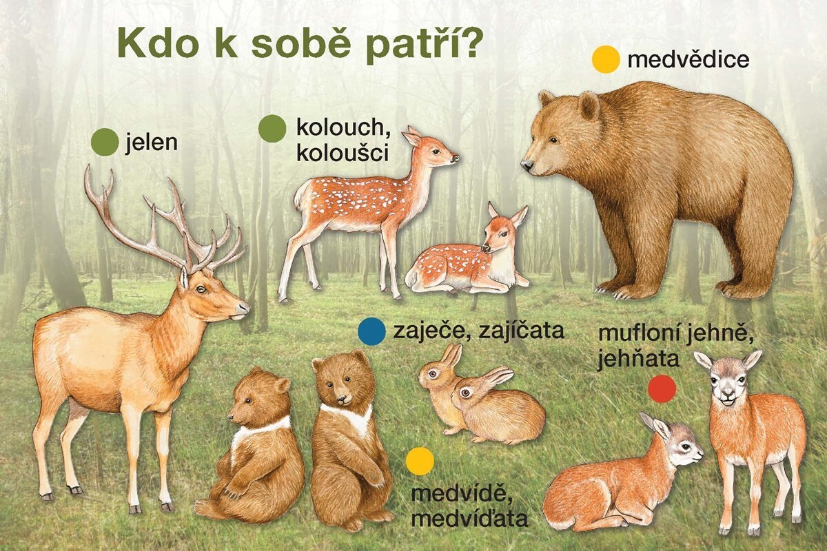 V poznávacím leporelu se nejmenší děti naučí rozeznávat a správně pojmenovat jednotlivé druhy zvířat, přiřazovat k samci samici a mláďata. Je rozděleno do oddílů: Náš dvůr, Náš les, ZOO a Naši mazlíčci.