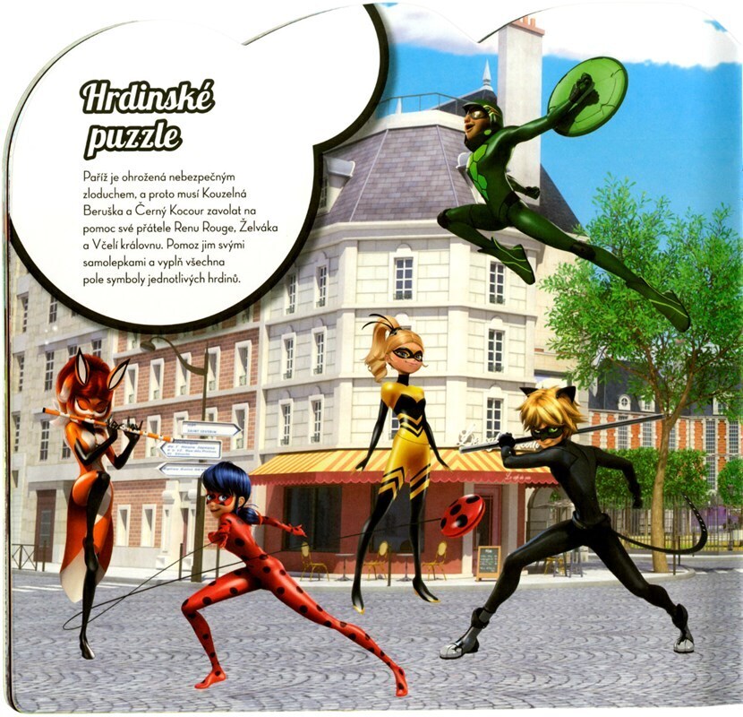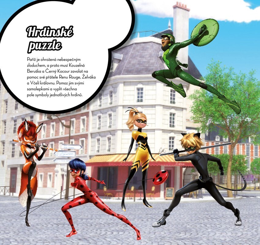 Vstupte s námi do napínavého světa Kouzelné Berušky a Černého Kocoura! Podaří se našim dvěma hrdinům porazit všechny padouchy v čele s Lišajem? A v koho se promění jejich kamarádi? Tvořte svět Marinette a Adriena pomocí samolepek a proměňte je v Kouzelnou Berušku a Černého Kocoura. 31 cool scén...