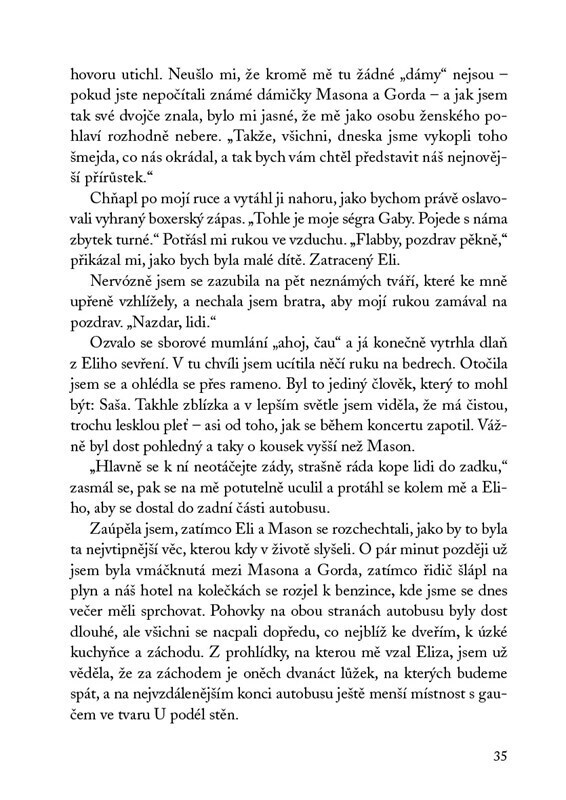 Šestadvacetiletá Gaby Barreto má mnoho tváří. Je čestná, sarkastická, kamarádská i protivná – záleží na tom, koho se zeptáte. Když jí brácha nabídne, aby s jeho kapelou jela na turné a prodávala merch, nerozhoduje se dlouho. Dvě kapely, tři kontinenty, devadesát dní. To bude brnkačka! Kdyby jen...