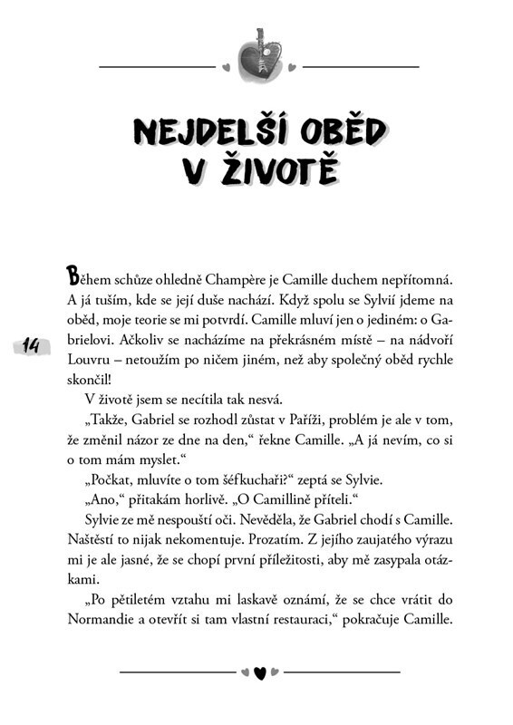 Po poněkud komplikovaném začátku a řadě omylů si začínám život v Paříži opravdu užívat. Kolegové v Savoiru mě přijali mezi sebe a šéfová mi už skoro nebouchá dveřmi před nosem. Když se procházím po své čtvrti, cítím se jako doma. A od doby, co se do mého malého bytečku nastěhovala moje kamarádka...