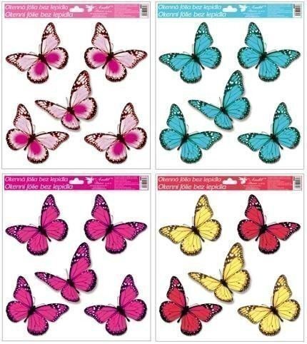 Okenní fólie 33 x 30cm - motýli s glitry/mix motivů