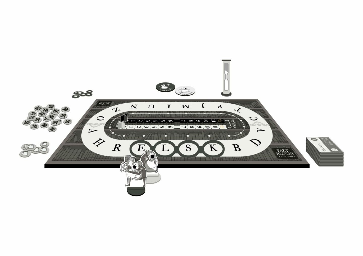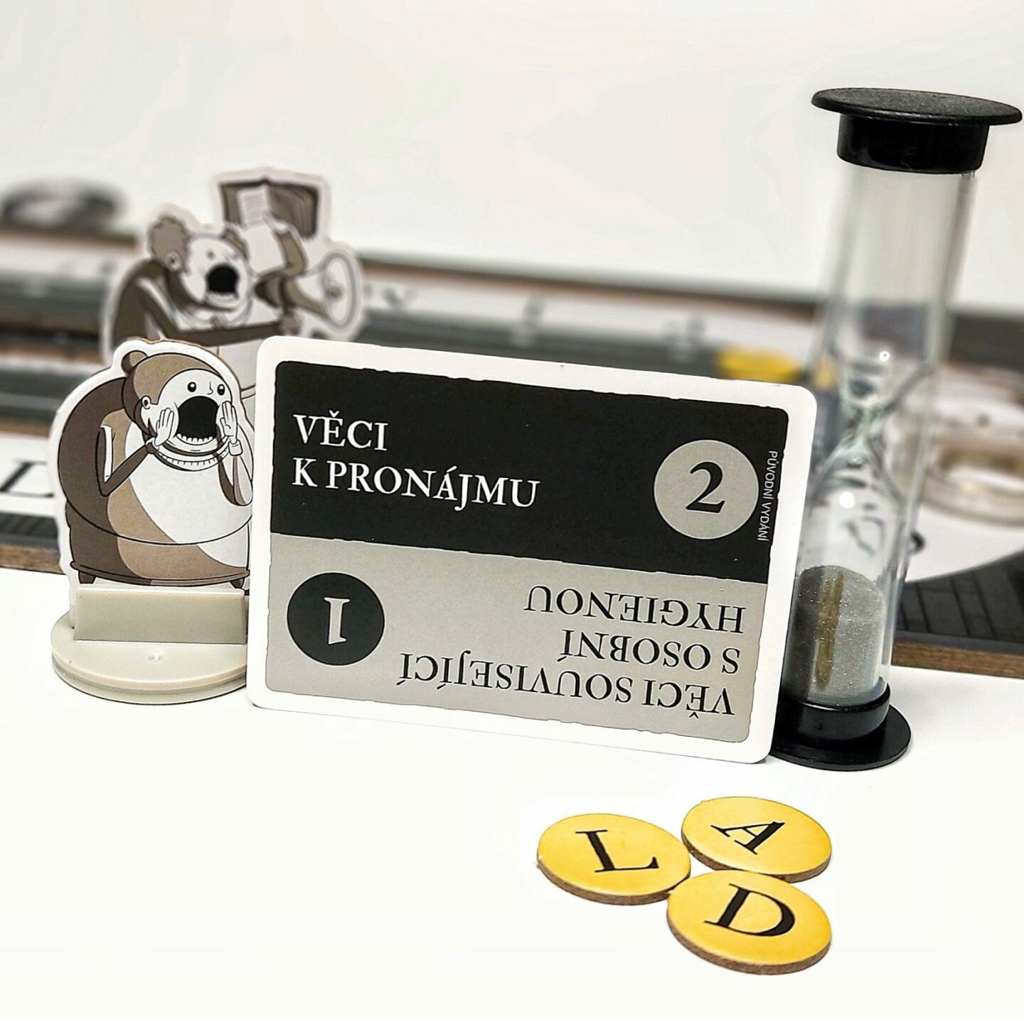 Obsah balení: 60 karet kategorií 1 herní plán 2 knihovníci 20 žetonů s písmeny 12 bonusových žetonů 2 žetony okruhu 2 počitadla bodů 1 řetěz 1 minutka 1 česká pravidla