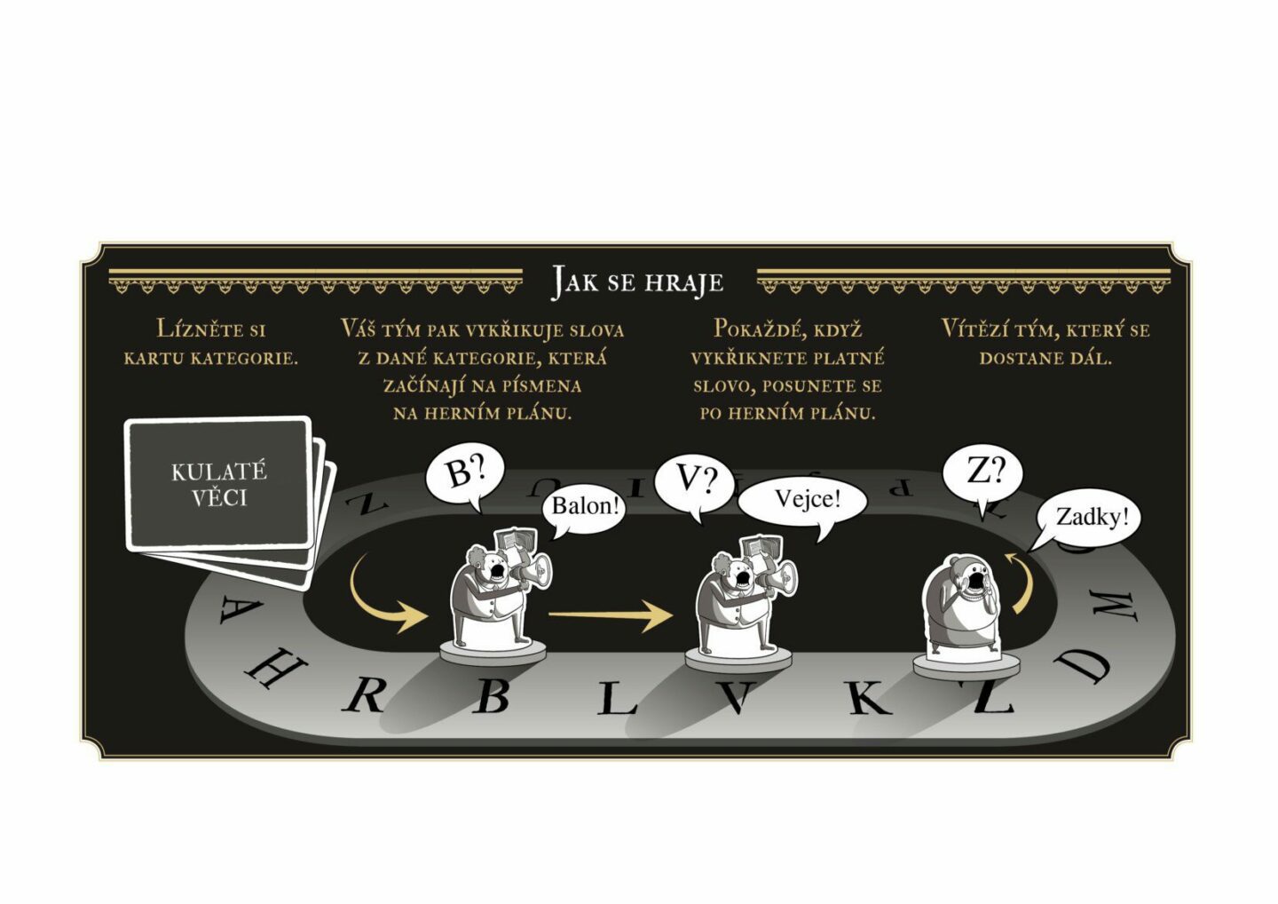která začínají na konkrétní písmeno a zapadají do určité kategorie. Počáteční písmena se změní pokaždé, když zakřičíte správnou odpověď, a pokud váš tým vymyslí víc slov než ten druhý, získáte body! Co je cílem hry? Být v tom týmu, který jako první získá 12