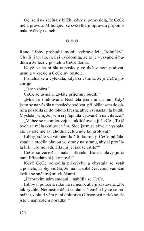 Libby si přeje k Vánocům jediné – aby už bylo co nejdřív po nich. Ztratila mámu, posledního člověka, který jí z rodiny zbyl, a zoufale se snaží zachránit rodný dům, a tak nemá na Vánoce ani pomyšlení. Dvacet let staré vánoční přání adresované její mámě ji však zavede do zasněženého městečka...