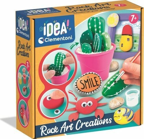 Zábavná kreativní sada Clementoni IDEA na výrobu barevných kamínků. Popusťte uzdu fantazii a tvořte. Kameny různých tvarů a velikostí můžete zdobit pomocí temperových barev a nalepovacích očí. Kolečko s kreativním výběrem výzev zapojuje dítě do hry a vybízí ho k vytváření malých kamenných...