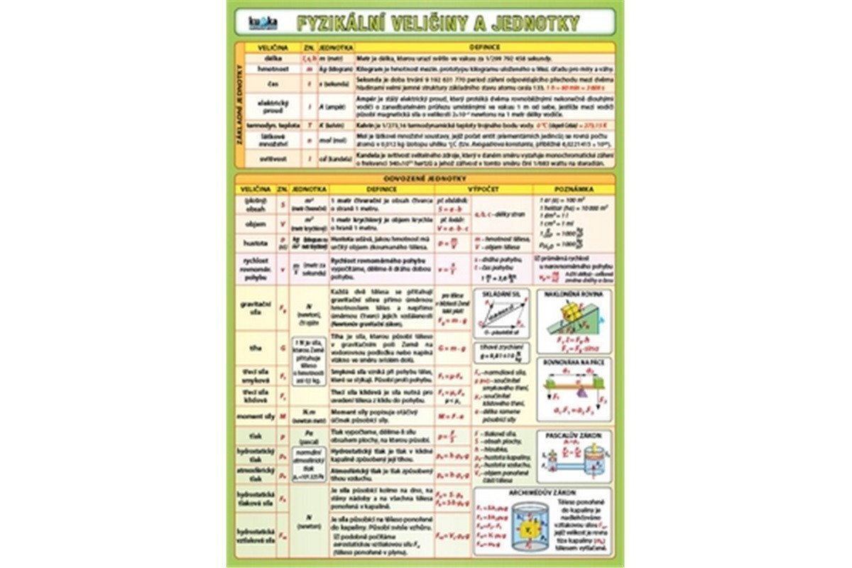 Přehled fyzikálních veličin a jejich jednotek určený zejména žákům základních škol. Tabulka obsahuje definice, základní vzorce a...