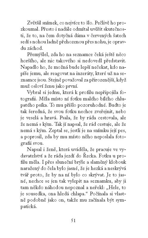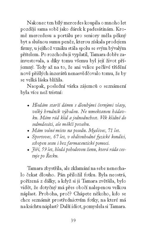 Seznamka po padesátce je jako spící sopka – všichni jsou zdánlivě zkušení, klidní a vyrovnaní, ale pod povrchem to vře. Svoje štěstí tam zkouší i novinářka Markéta, pečovatelka Briana a majitelka seznamky Tamara. Všechny se poznají se sympatickým mužem, který ale vždycky po desáté schůzce zmizí....