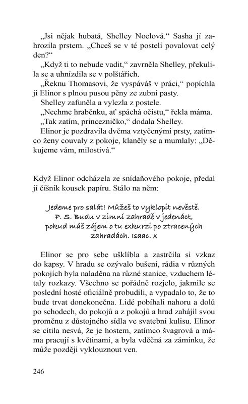 Nory vede v Londýně antikvariát a je spokojena. Nikdy ji neokouzlil extravagantní životní styl jejích spolužáků z privilegované soukromé školy. Dva spolužáci, kteří se chystají vzít, nyní dokonce pozvali celou partu na týdenní oslavu před svatbou na hradě nedaleko bývalé školy. Nory ale netuší,...