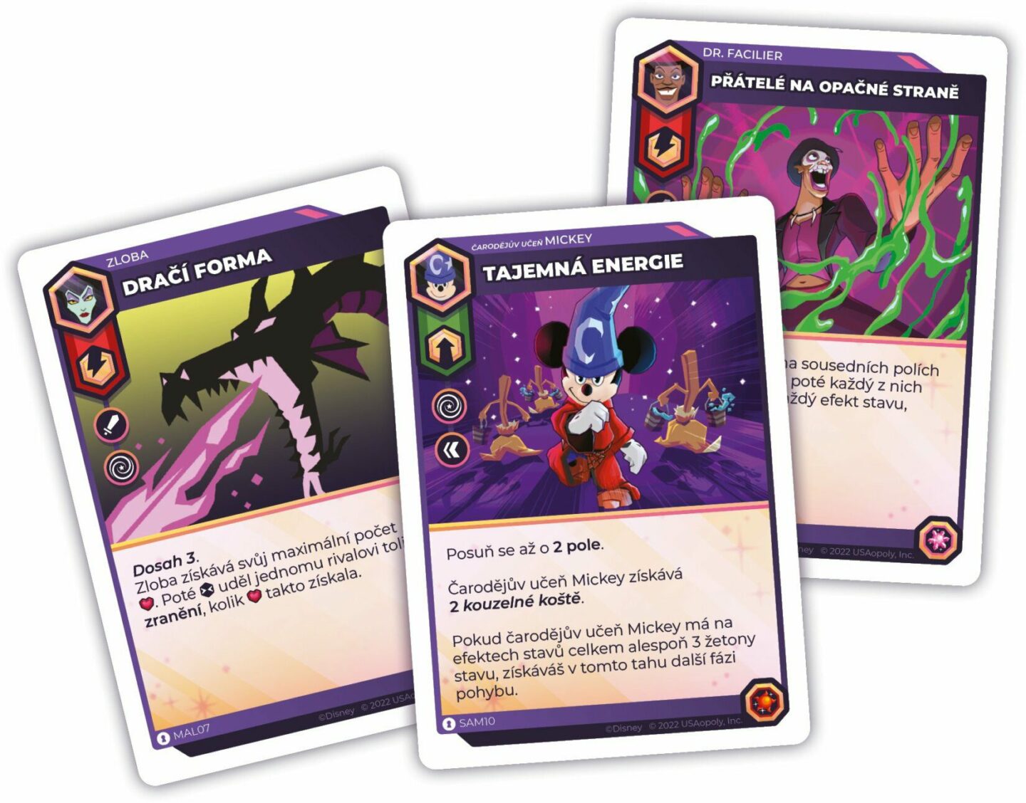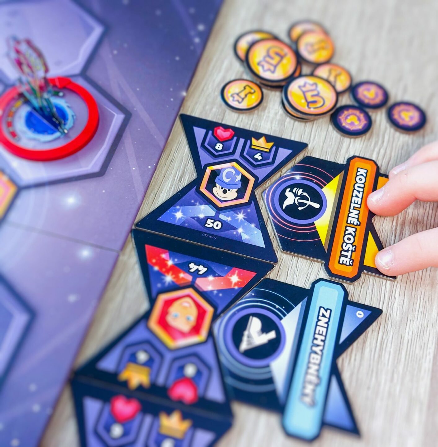 světy Disney a Pixar. Váš tým postav bude používat širokou škálu schopností ve snaze omráčit své soupeře a získat vítězné body. Zvítězí tým, který bude mít na konci posledního kola více vítězných bodů. Tohle je souboj magie, svalů a důvtipu. Pouze jeden kouzelník