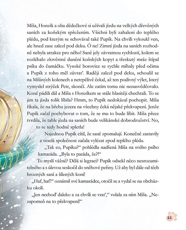 Míša s Pupíkem tráví zimní prázdniny v hájovně u strýce Petra, který vede útulek pro lesní zvířata. Ráda pomáhá strýčkovi s péčí o obyvatele Lesního útulku. Mezitím, co holčička a pejsek postupně získávají důvěru náladového divočáka, lesní ohrada přijme do své péče raněného losa a v blízkosti...