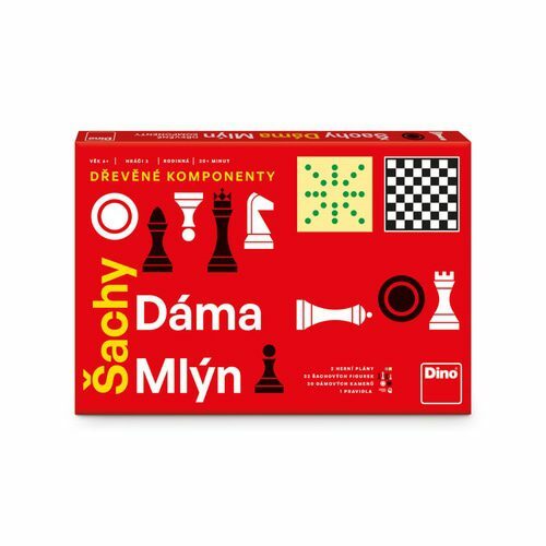 Tradiční hry šachy, dáma, mlýn s dřevěnými komponenty. Věk 6+.