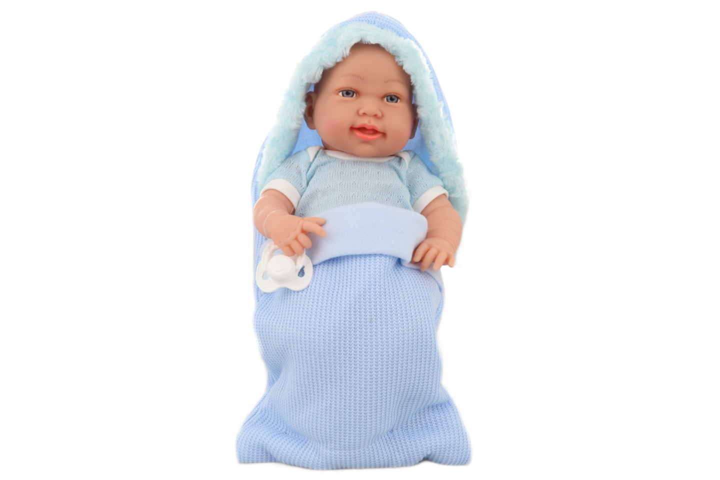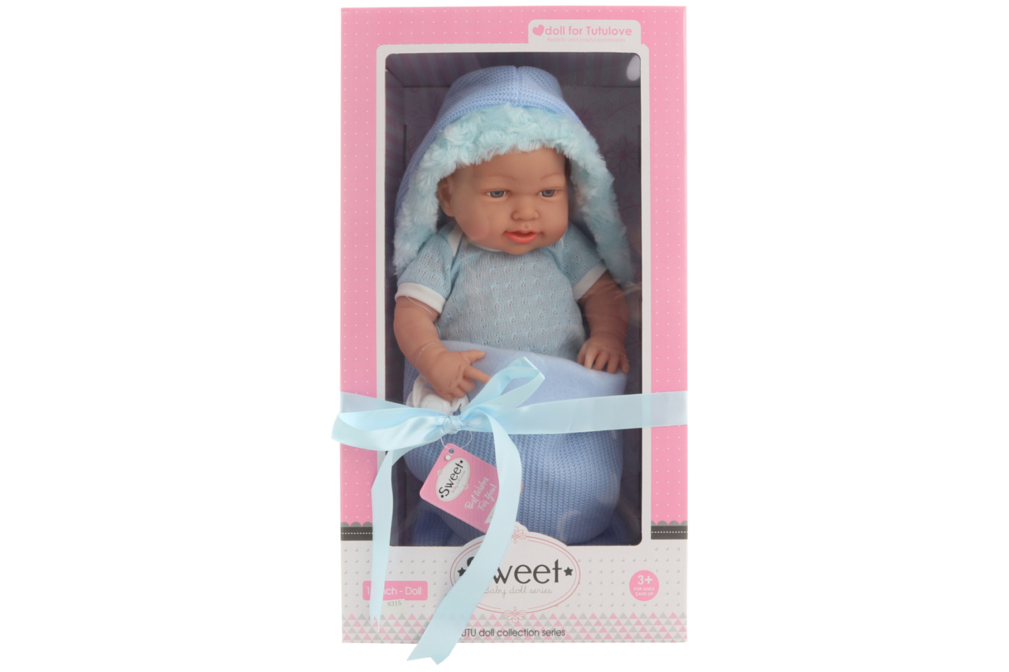 Miminko chlapeček v dárkovém balení. Součástí balení je zavinovačka a dudlík pro miminko. Rozměry miminka cca 39 x 16 cm. Rozměry balení cca 25 x 46 x 15 cm. Věk 3+