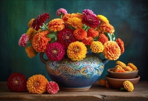 Dřevěné puzzle Zátiší s chryzantémou A3