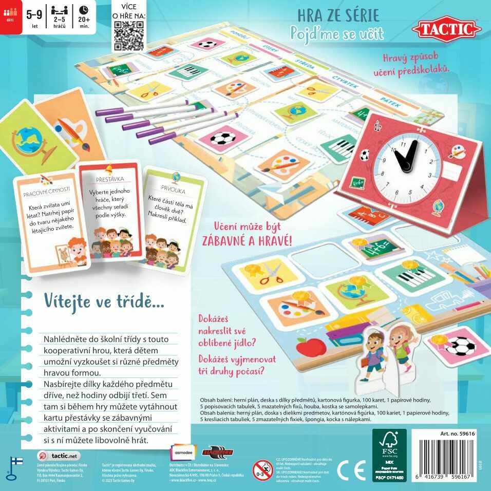 umožňuje dětem hrát si na školu vzájemným působením, kdy si osvojují různé role. Vymýšlejí pravidla hry a společně se učí řídit se jimi. Při hraní se zlepšuje jejich představivost a tvořivost spolu se sociálními dovednostmi. Obsah balení: herní plán deska s dílky