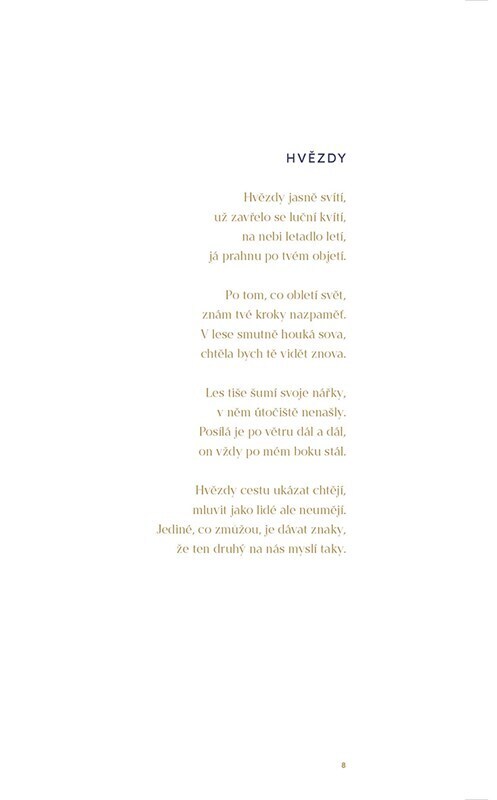 Básnická sbírka o radostech a strastech, které prožívá lidská duše. Část sbírky nazvaná Strasti vznikla během autorčina těžkého období, ve kterém bojovala s depresí. Část Radosti již byla psána v době prosvětlené lepšími dny a především nadějí. Básně otevírají témata, která člověka nenechají...