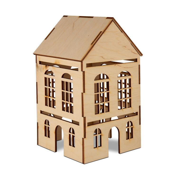 Dřevěná 3D dekorace domečku: 2 okýnka