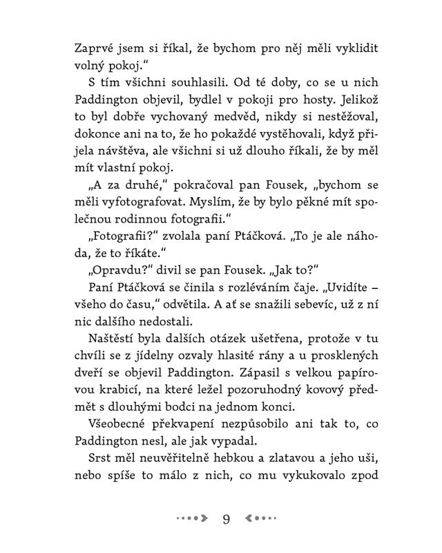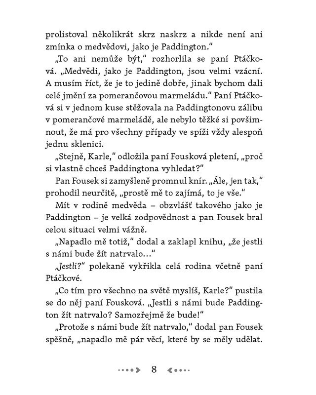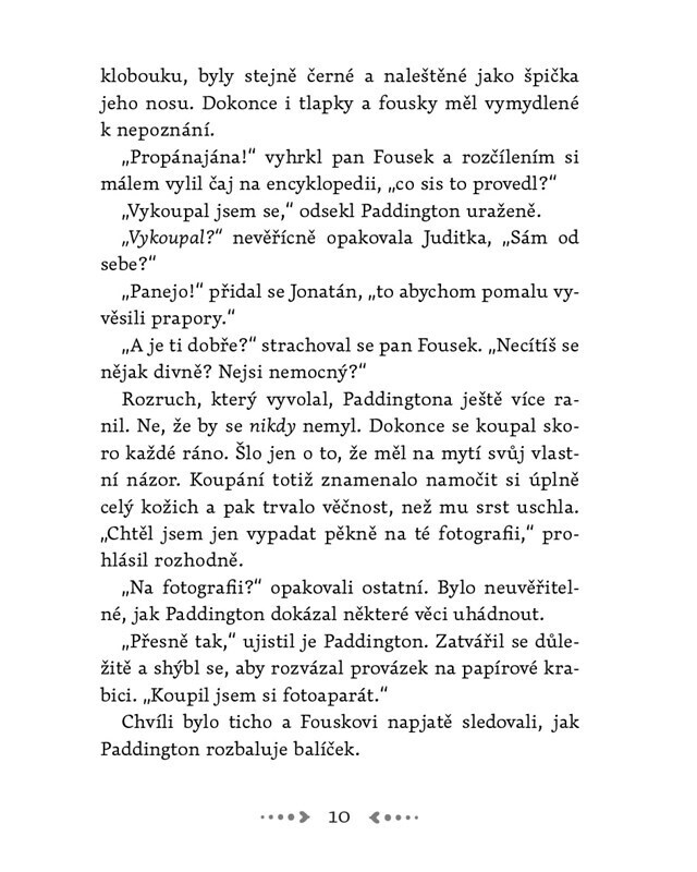 Paddington, medvídek z nejtemnějšího Peru, se spokojeně zabydluje u rodiny Fouskových v Londýně. Svými ztřeštěnými nápady mnohdy převrátí celý dům vzhůru nohama a Fouskovi se nestačí divit. Medvídek se totiž mimo jiné pustí do fotografování, vymaluje si pokoj, uspořádá ohňostroj, vyšetří...