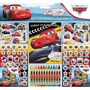Samolepkový set s omalovánkami a voskovkami - Auta