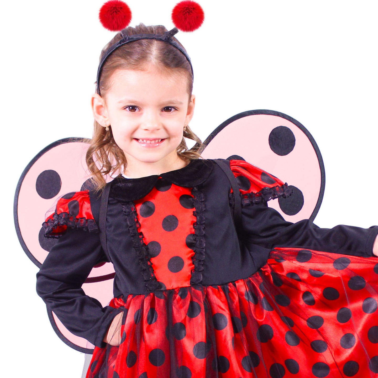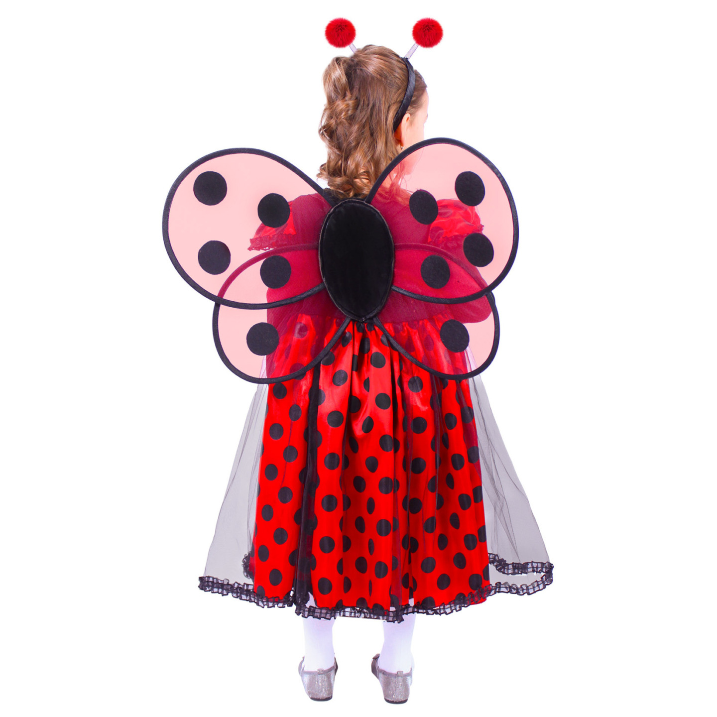 Půvabný karnevalový kostým s motivem berušky M je určen pro holčičky ve věkovém rozmezí 6-8 let (117-128 cm). Balení obsahuje saténové puntíkované šatičky v červeno-černé barvě zdobené tylem, perfektně sladěná křídla a čelenku s tykadly. Proměň se na berušku díky tomuto roztomilému kostýmu!...