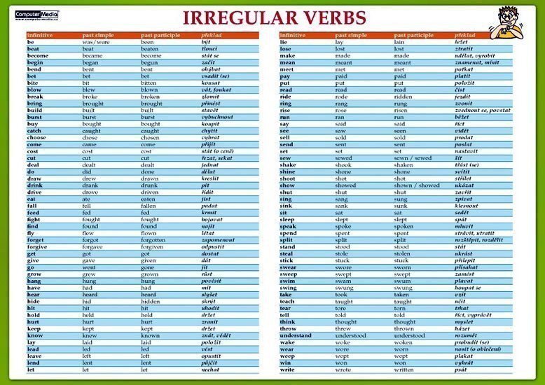 Irregular verbs / Nepravidelná slovesa - Naučná karta