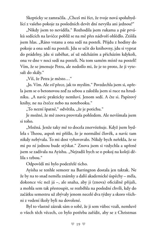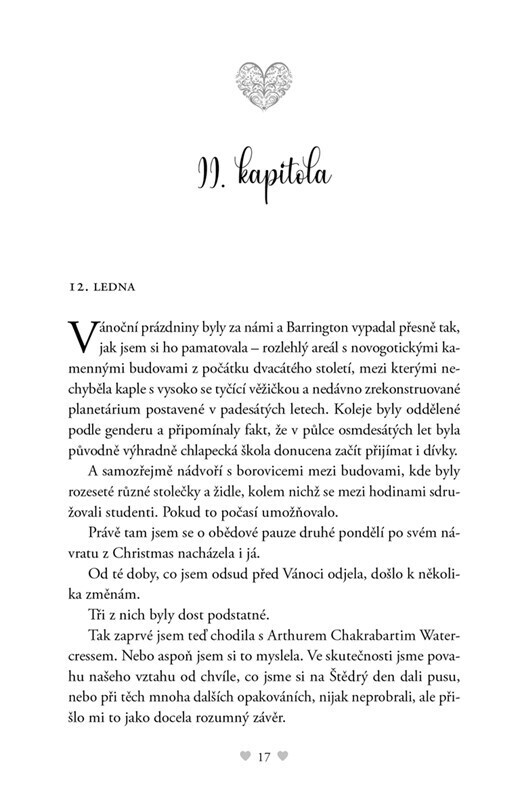 Finley i Arthur se po Vánocích vrací do Barringtonu a ani jeden z nich pořádně neví, jak to mezi nimi vlastně je – chodí spolu? Nechodí spolu? Co přesně znamenal kouzelný štědrovečerní polibek? Nepomáhají jim ani nepřátelsky naladění spolužáci, zvlášť jedna z holek, která si na Arthura evidentně...