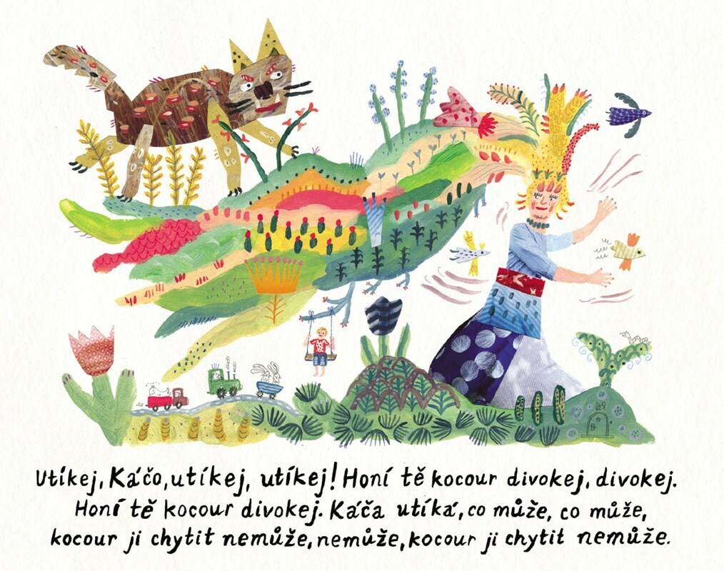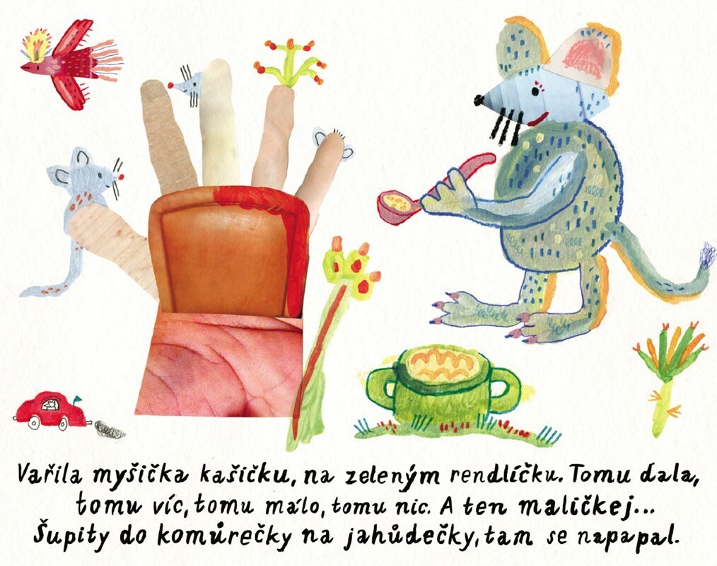 Leporelo Kalamajka mik mik mik přináší nejmenším výběr nejoblíbenějších českých říkanek, básniček a písniček, tzv. klasiku s krásnými ilustracemi a ručním písmem čerstvé maminky a úspěšné ilustrátorky Ester Nemjó.